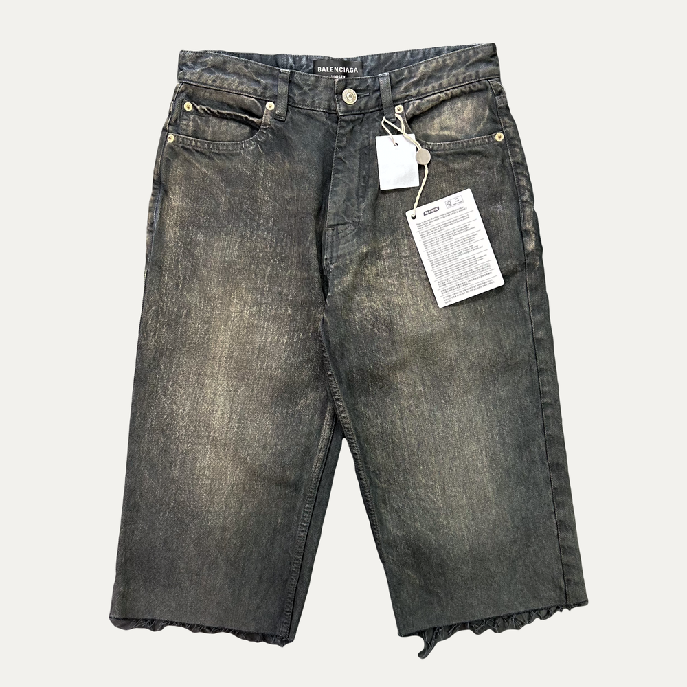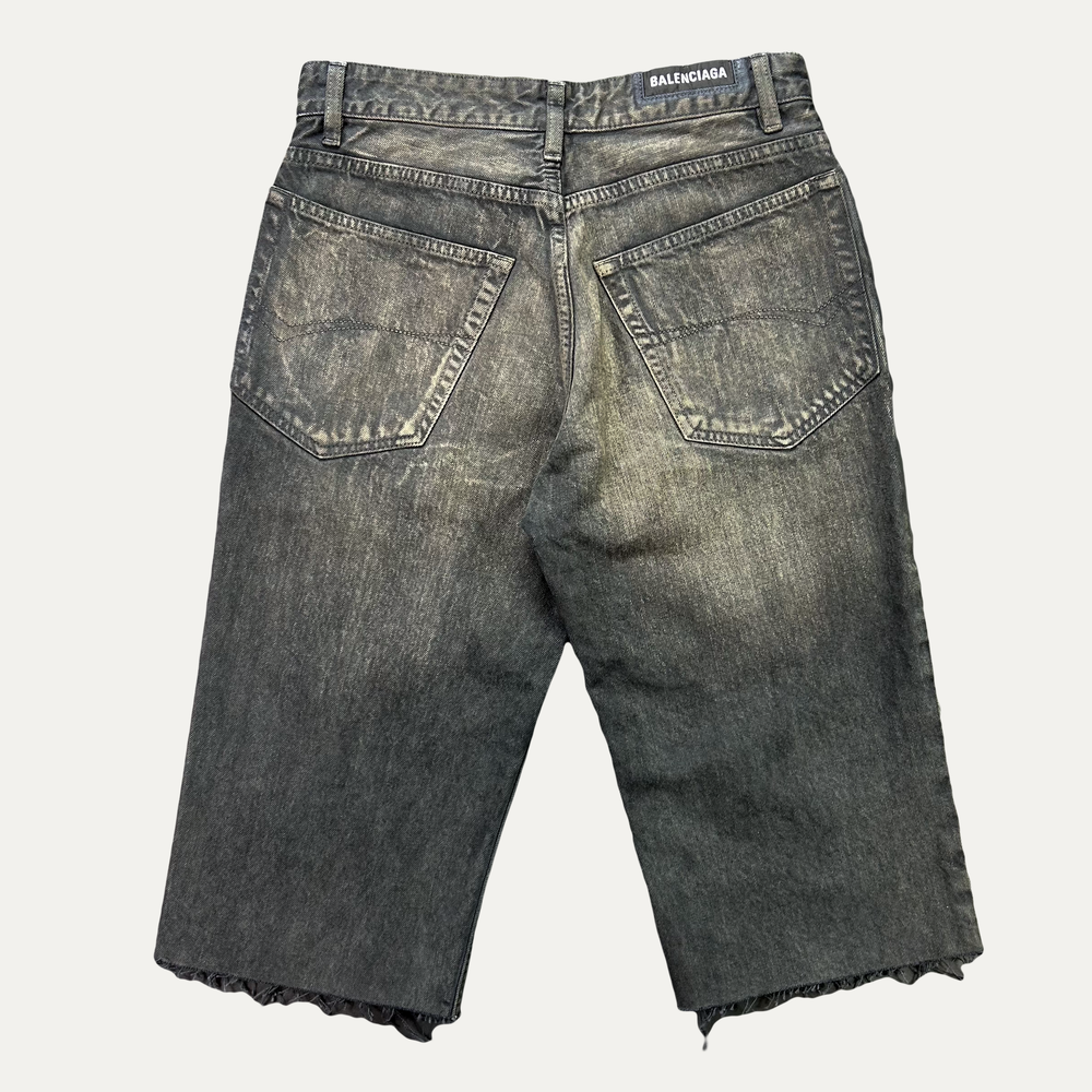 • Balenciaga Distressed indigo Ring Denim Short